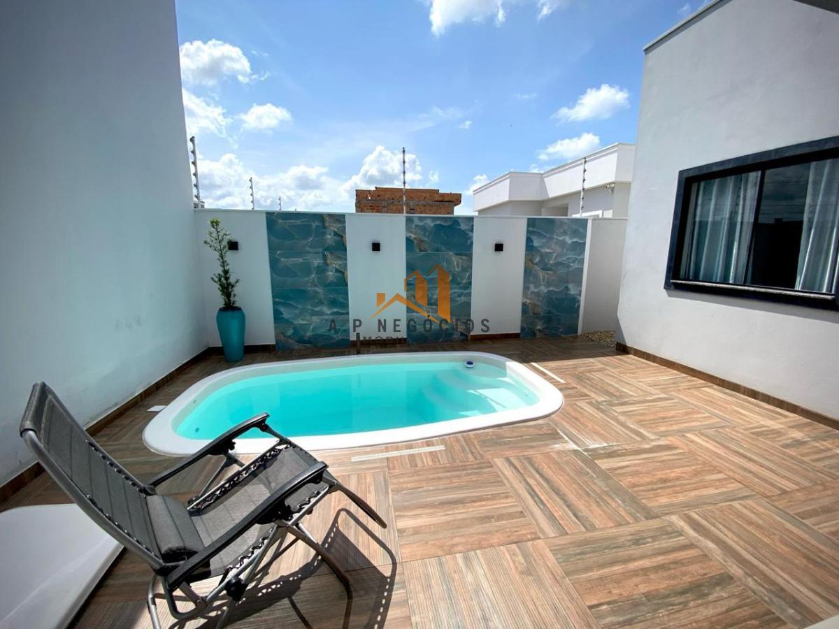 Desfrute de momentos de lazer na sua própria piscina privativa, além de uma edícula que acrescenta versatilidade ao espaço. A praticidade é evidente nas duas vagas de garagem cobertas e na funcional área de serviço.
