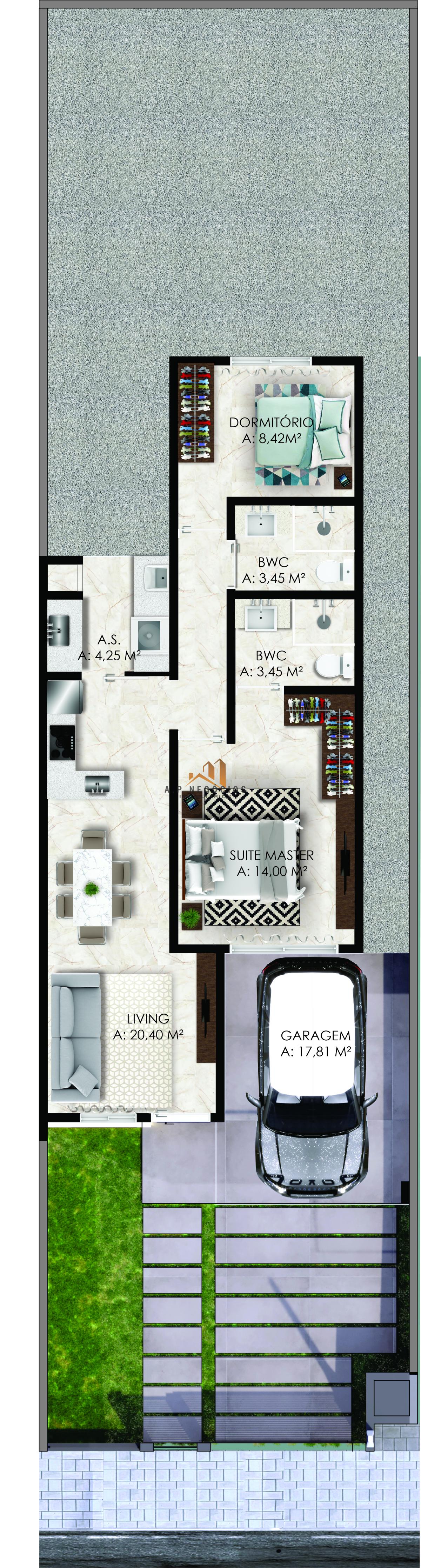- 2 quartos sendo 1 suíte