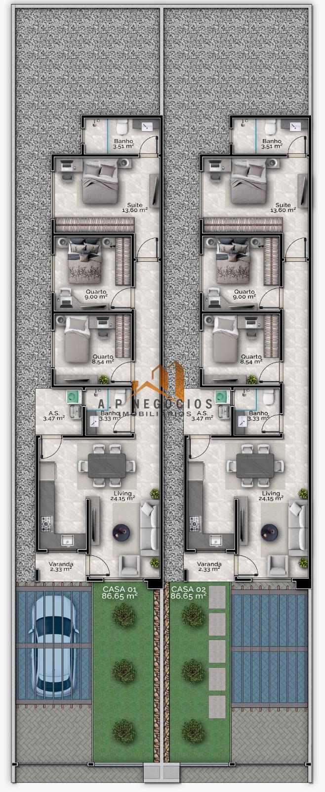 Esta casa tem 86,65m² de área útil esta casa é ideal para você e a sua família.