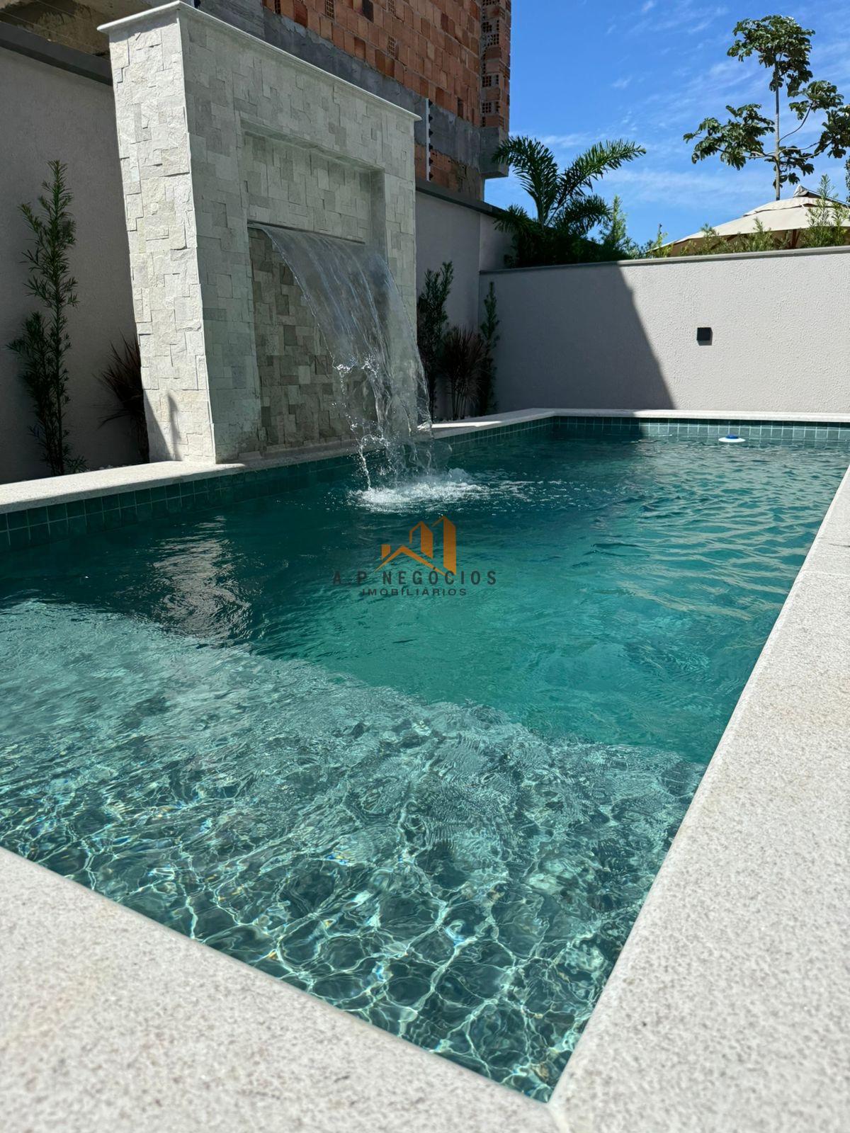 - Piscina em concreto + Prainha com revestimento em piso, cascata e com infra para aquecimento.