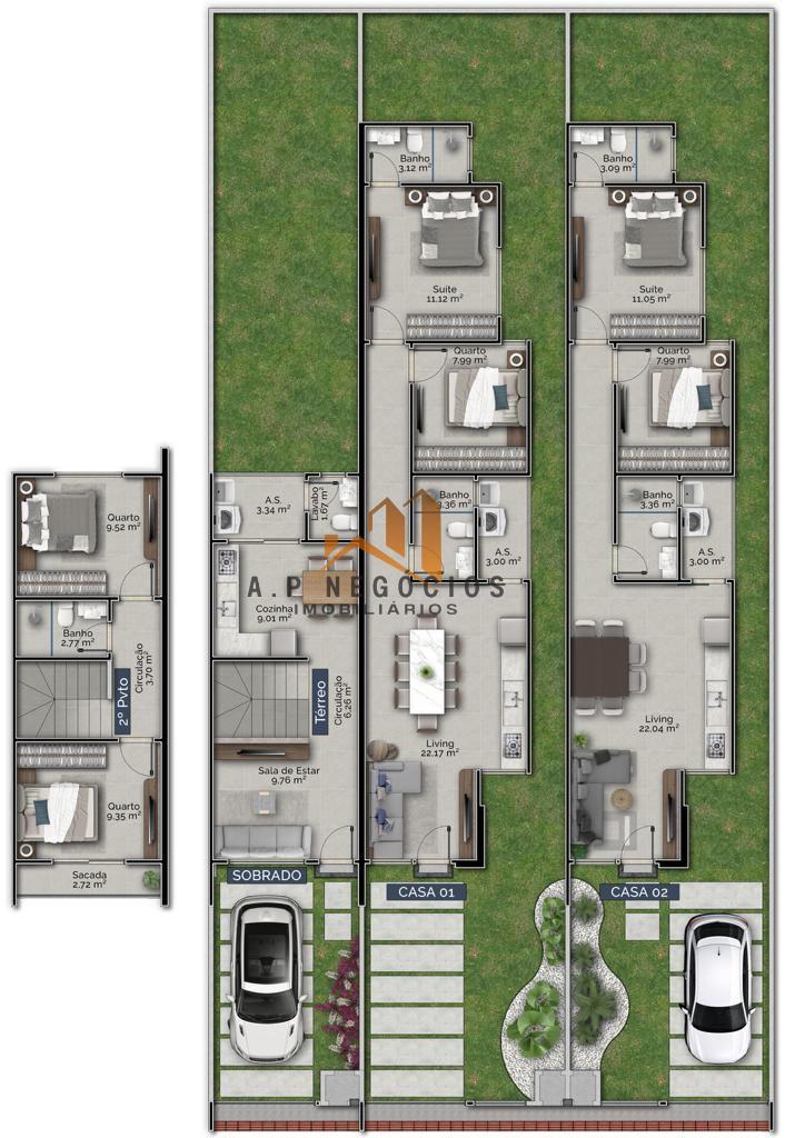 Sobrado com 2 quartos, 70,80m², à venda em Tijucas, Areias - Mata Atlântica